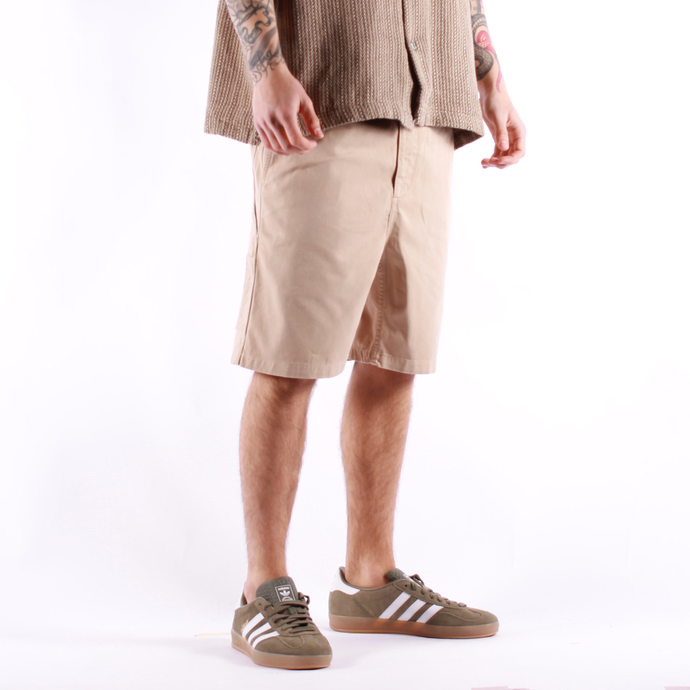 I Flint Short sono comodi pantaloncini realizzati in twill di cotone biologico sottoposto a lavaggio per una tonalità particolare. Il capo è dotato di elastico in vita con coulisse e inserto nella cucitura interna per il massimo comfort, presenta inoltre dettagli funzionali come le tasche porta-attrezzi. I pantaloncini sono impre