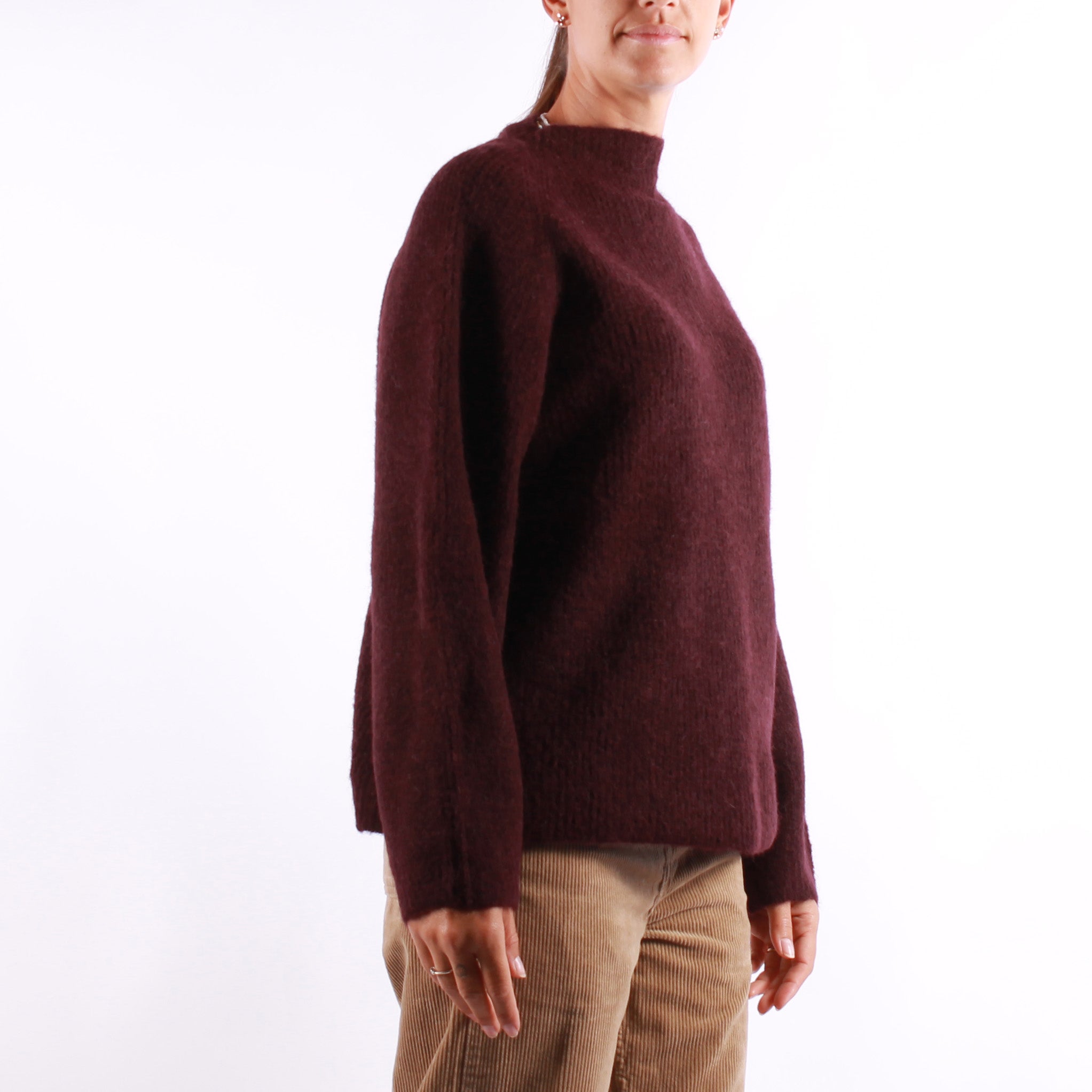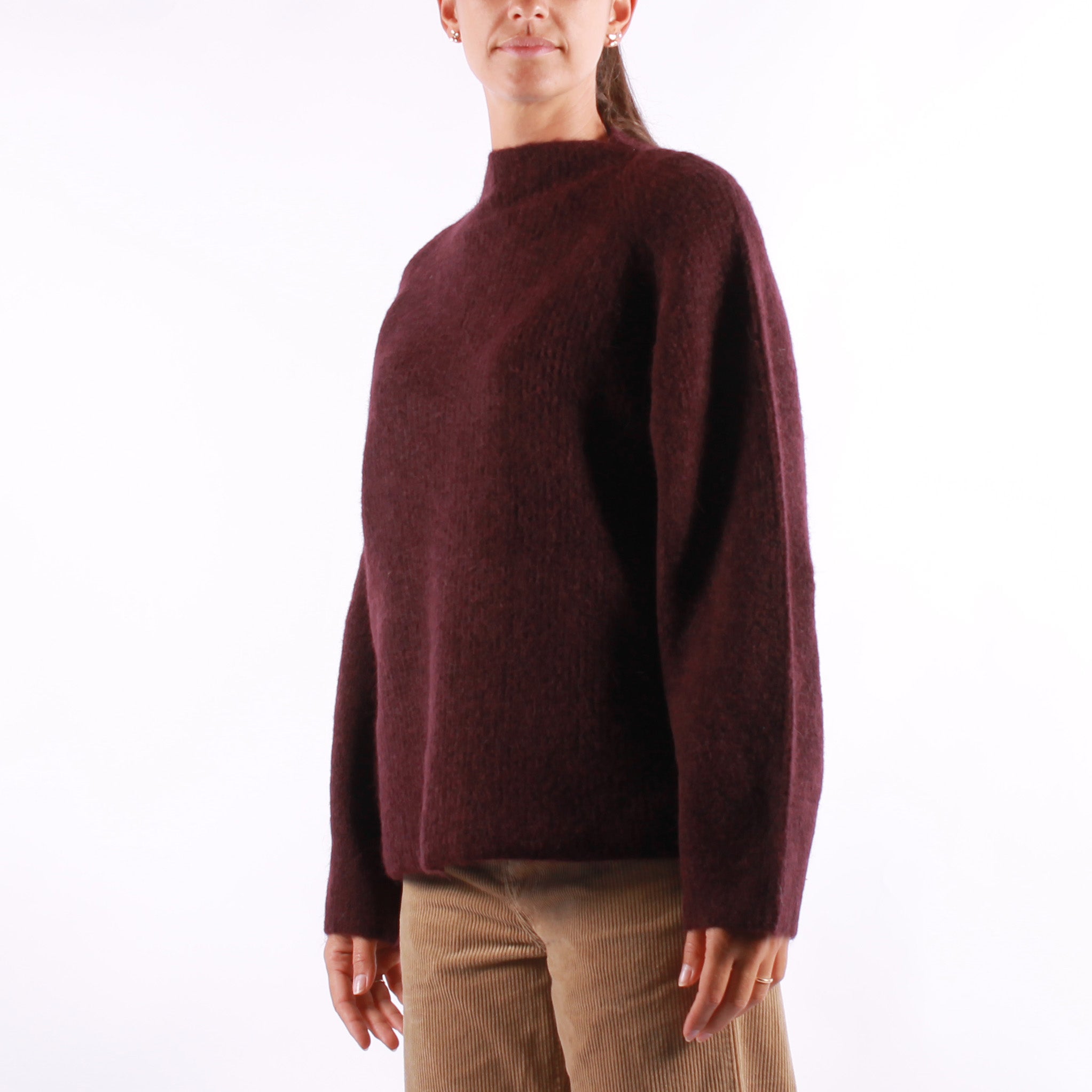 Selected presenta il maglione Sia Ras a maniche lunghe nella tonalità Fig, un pullover dal fascino raffinato pensato per aggiungere un tocco di lusso al look quotidiano. Realizzato in una morbida miscela di lana, si distingue per il collo alto, le spalle scese e le maniche lunghe che esaltano la sua vestibilità rilassata, ideale da abbinare sia a un denim casual che a capi più confortevoli da loungewear.