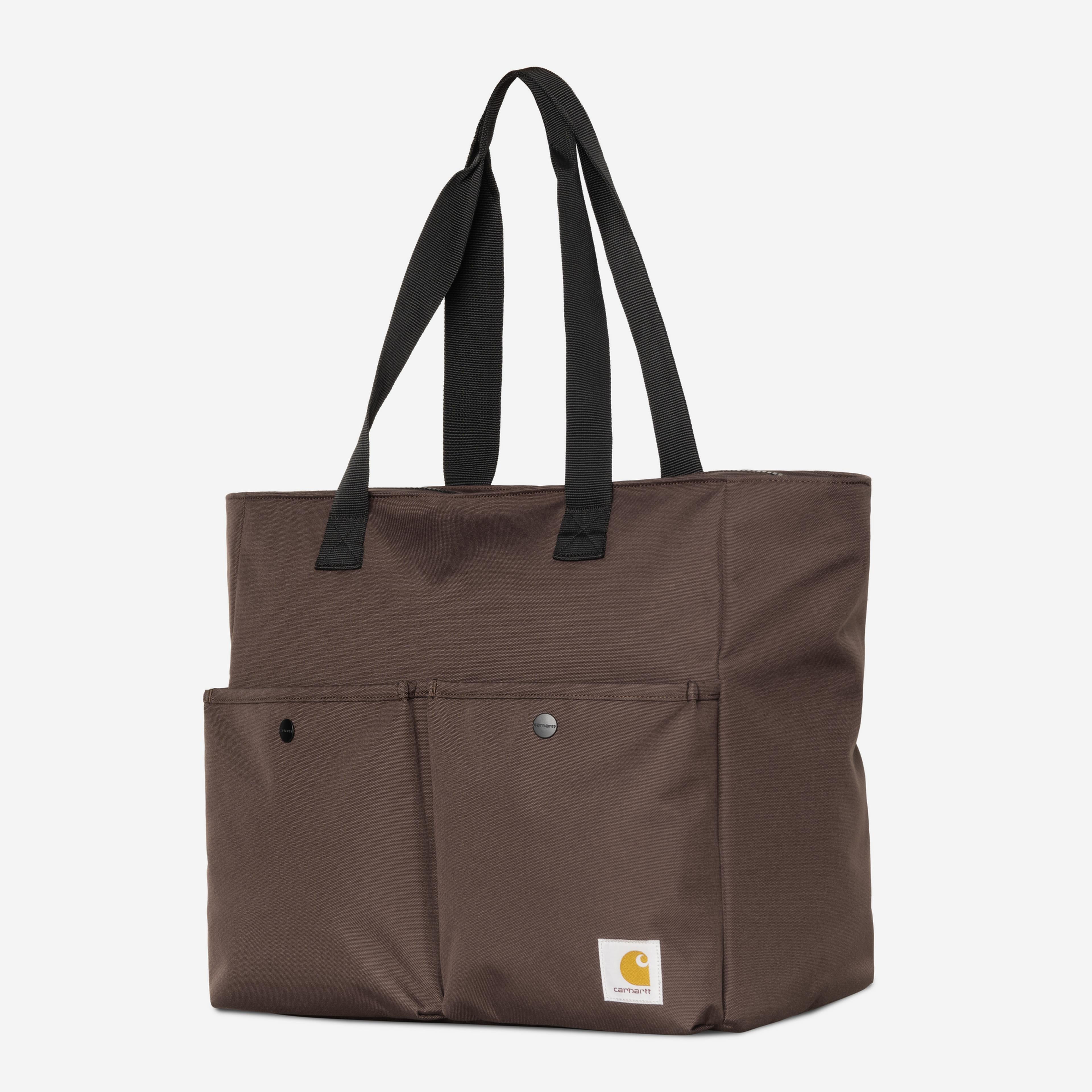 La Jake Tote Bag è realizzata in pesante tela di poliestere. La borsa presenta uno scomparto principale con zip. Internamente è dotata di due tasche ed esternamente di due tasche con bottoni automatici. Rifinisce il modello un’etichetta quadrata in tessuto.