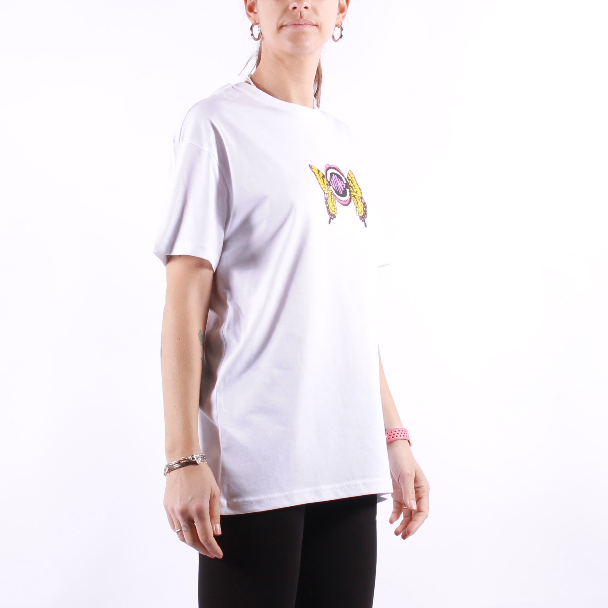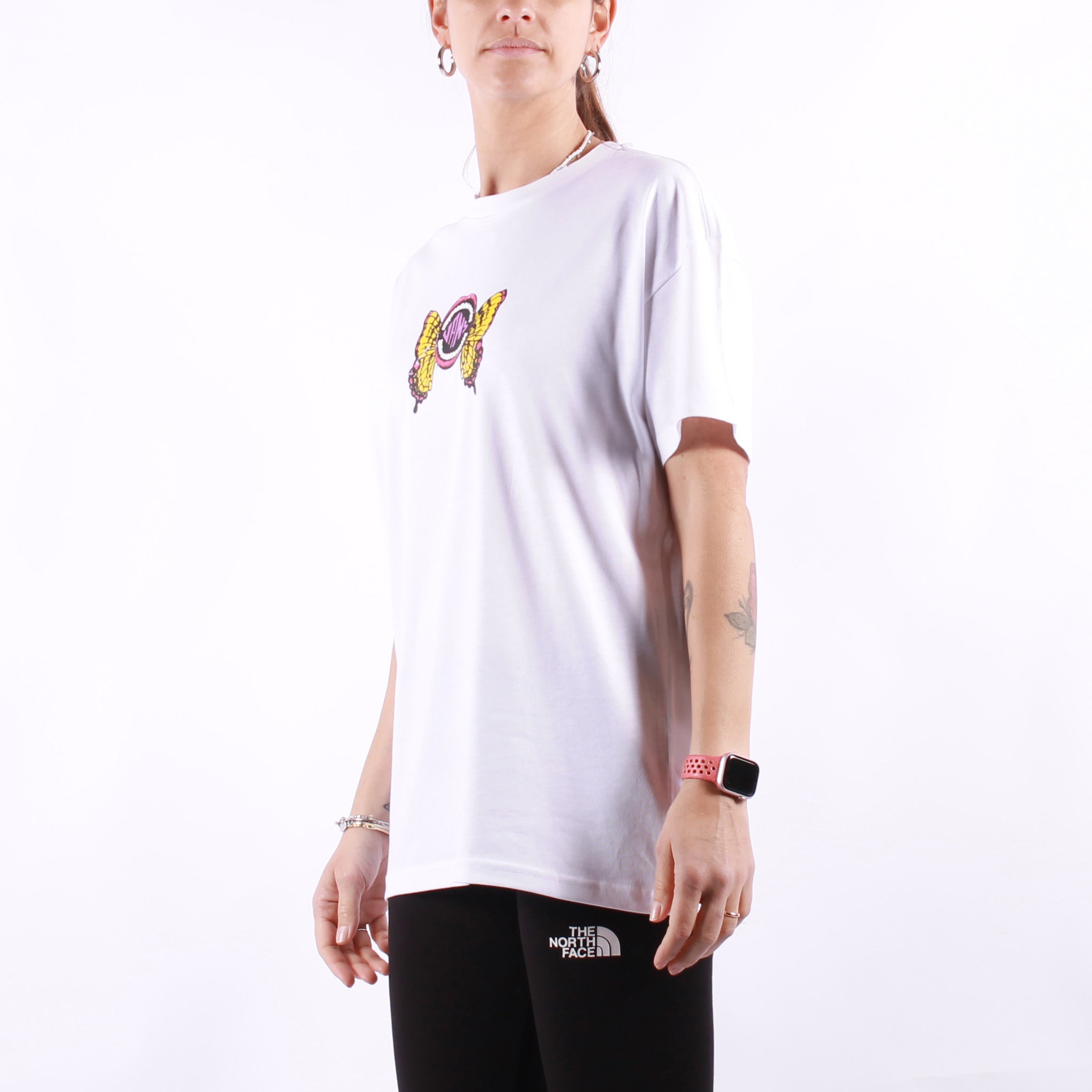 La maglietta Ethereal è un modello girocollo a maniche corte con logo Vans con immagini di ali sul davanti e sul retro. La vestibilità è oversize.