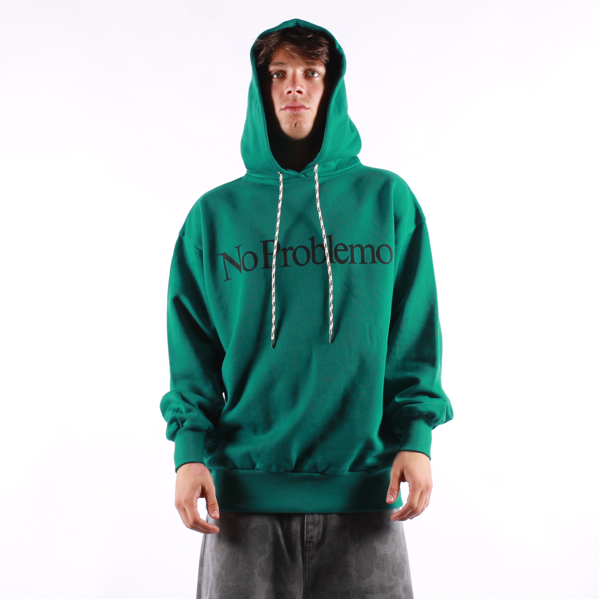 Felpa con cappuccio in jersey di cotone garzato, con fit rilassato e logo No Problemo stampato sul petto. Il cappuccio è regolabile tramite coulisse con cordino bicolor a contrasto. Polsi e fondo a costine completano il design. 100% cotone.