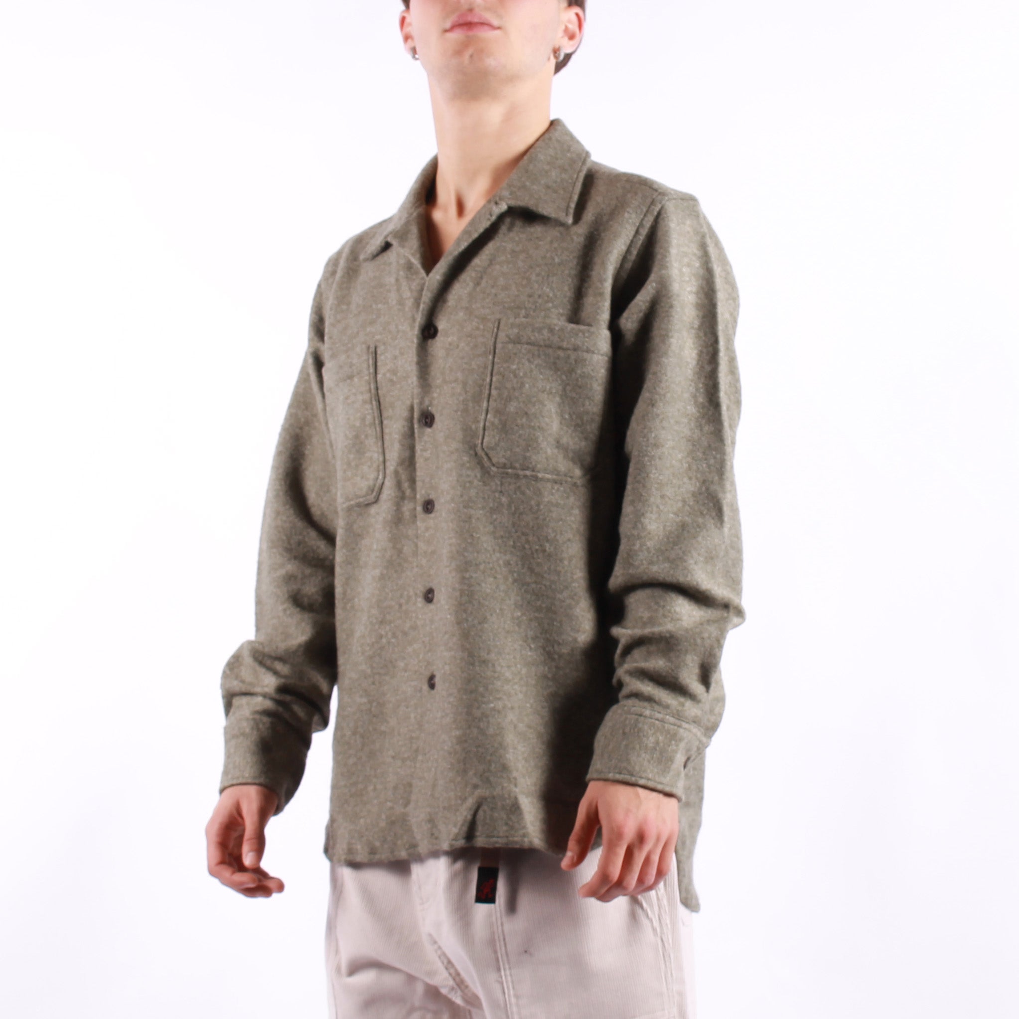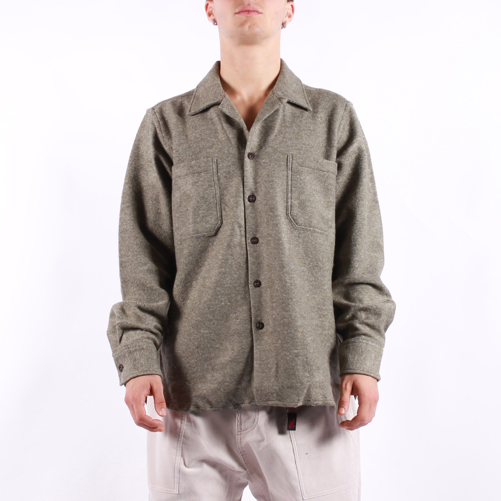 La Universal Works Work Shirt è una overshirt pratica e versatile, pensata per accompagnare ogni giornata con stile rilassato. Realizzata in un tessuto misto che combina acrilico, lana e poliestere riciclato, unisce calore e resistenza mantenendo un aspetto casual raffinato. Il design presenta colletto a un solo pezzo indossabile aperto o chiuso grazie al bottone con asola, due tasche applicate sul petto, chiusura frontale con bottoni e fondo arrotondato. Un capo dal fit confortevole che si presta sia come camicia leggera sia come strato intermedio, perfetto per look contemporanei con richiami workwear.