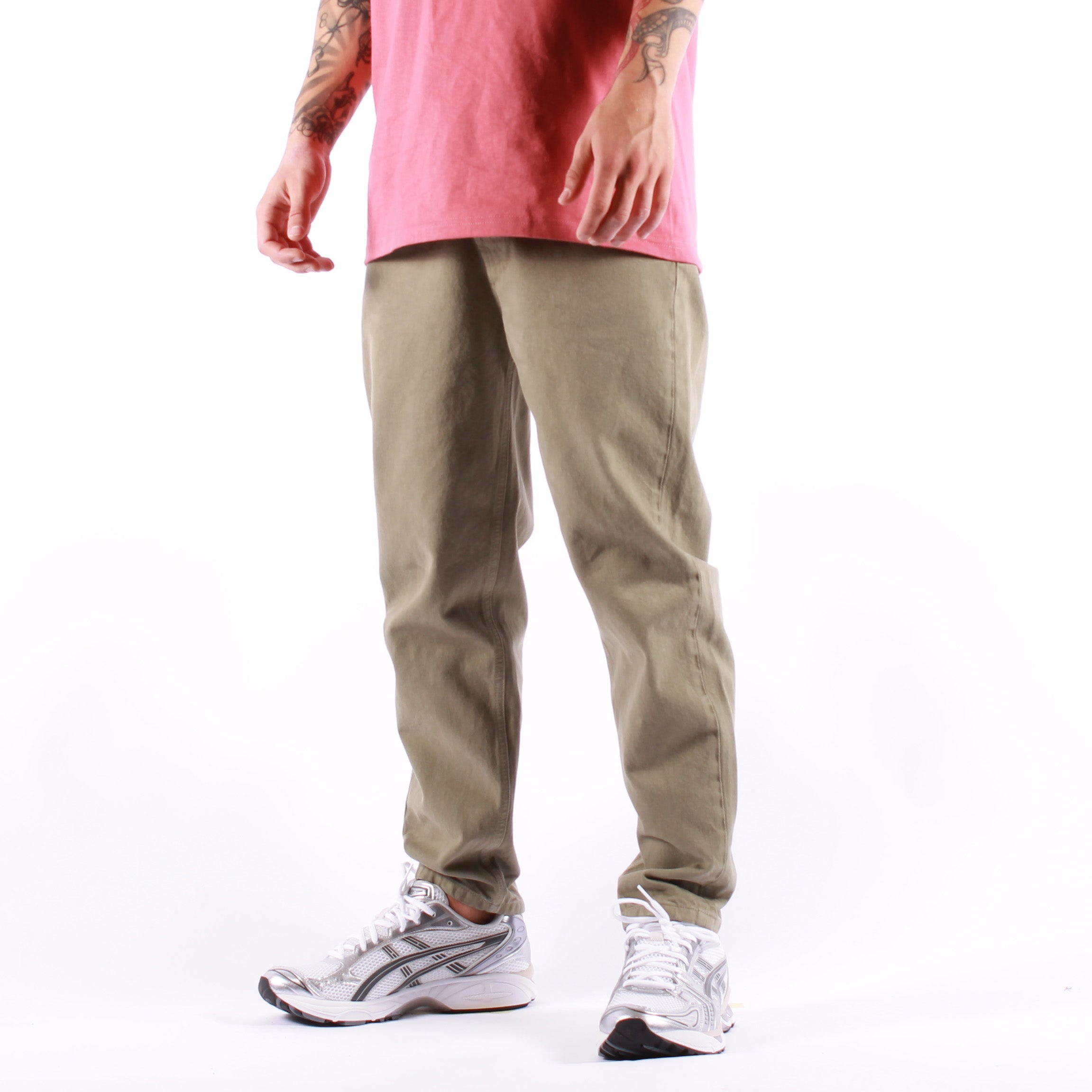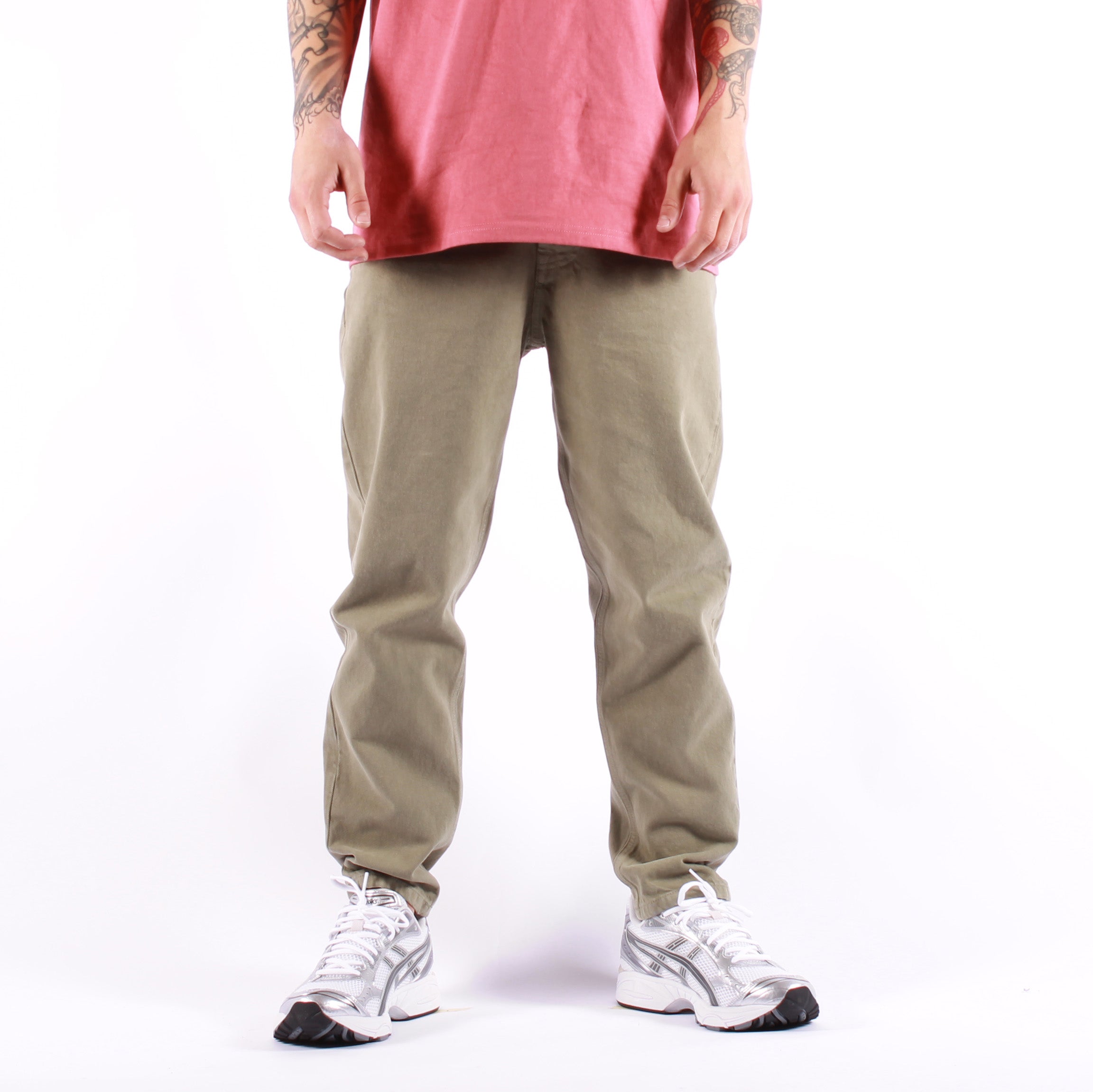 Amish propone il modello Jeremiah in versione Bull Stone Dye Dryed Herb, realizzato in robusto denim bull dal tono verde salvia con leggero effetto used che ne esalta il carattere vissuto. La vita media è completata da passanti e dall’iconico passante in tessuto logato sul retro, mentre la chiusura combina bottone logato e bottoni nascosti. Le tasche frontali e posteriori sono impreziosite da cuciture in contrasto, e il carrot fit assicura un equilibrio perfetto tra comfort e stile casual.
