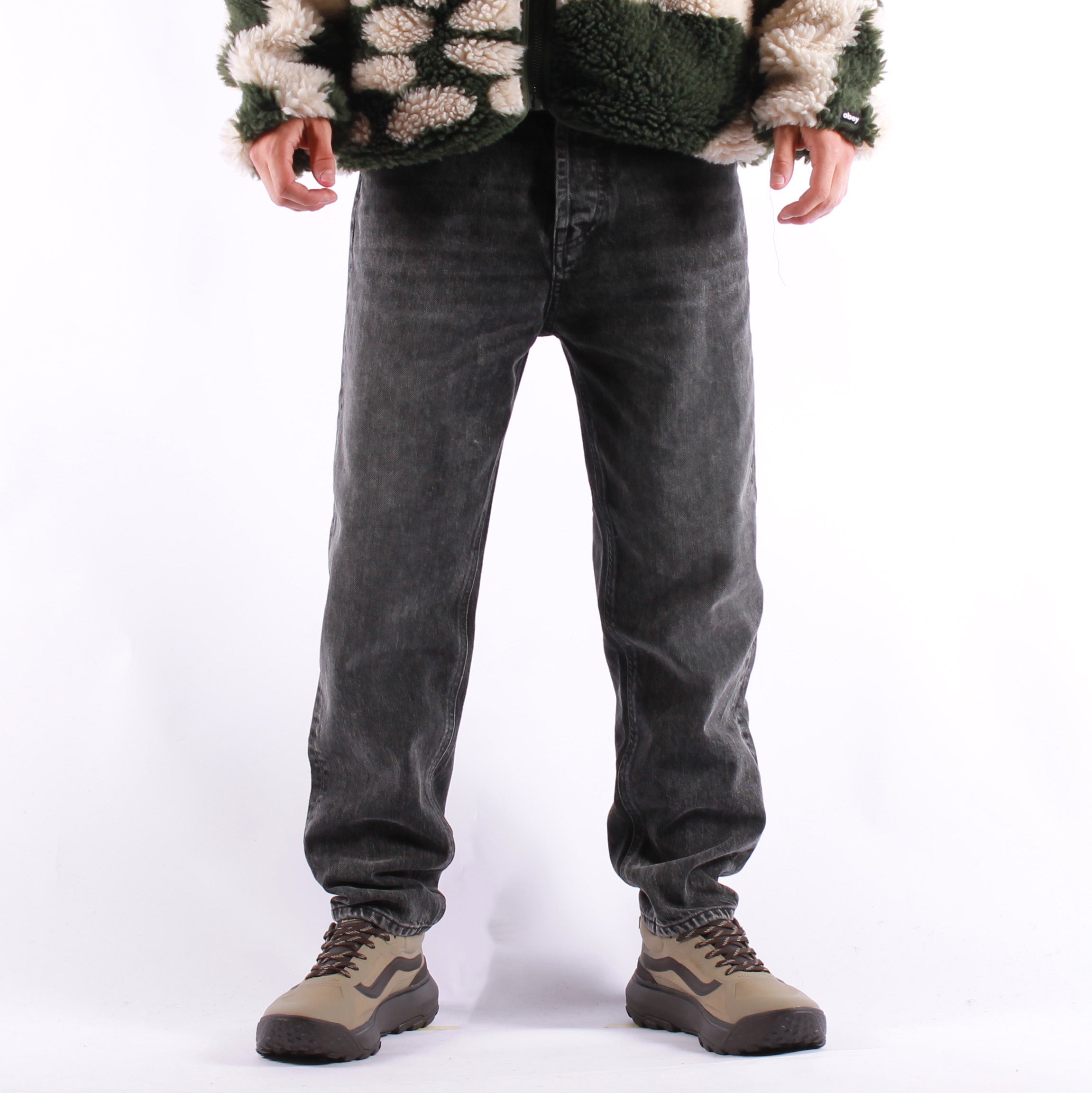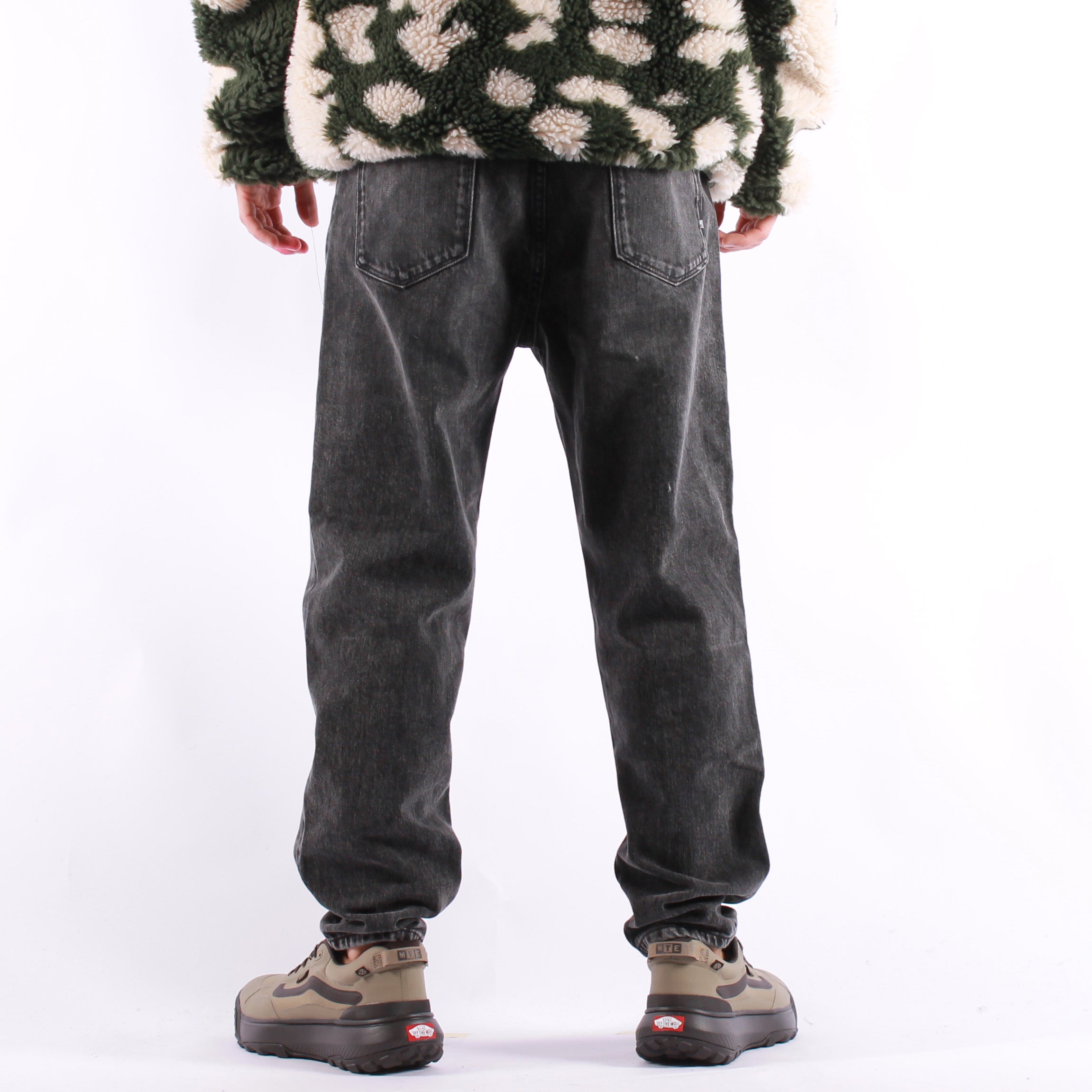 Amish reinterpreta il denim con il modello Jeremiah in versione Black, realizzato in cotone riciclato. Il lavaggio nero sbiadito conferisce un carattere autentico e vissuto, mentre la vita media con passanti è arricchita dal caratteristico passante logato sul retro. La chiusura con bottone e zip si accompagna a tasche frontali e posteriori dal design essenziale. La vestibilità regolare e la gamba ampia garantiscono comfort e libertà di movimento, rendendo questo jeans un capo versatile e contemporaneo, perfetto per look casual dal carattere deciso.