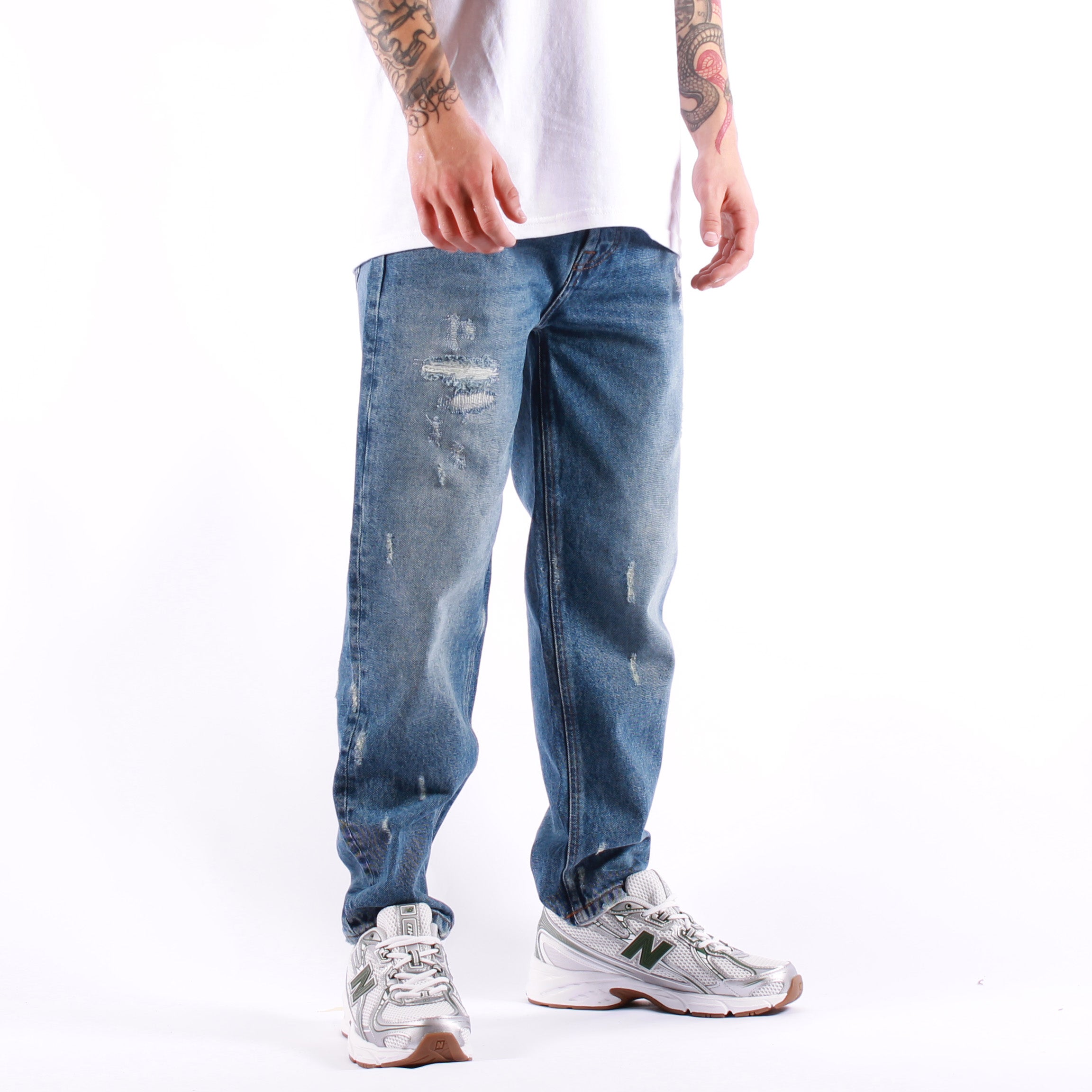 Il modello Jeremiah di Amish si presenta in denim New Order dal lavaggio medio-scuro con marcate sfumature e dettagli vissuti, arricchito da leggere baffature e strappi effetto used sul fronte per un look autentico. La vita media con passanti è completata dall’iconico passante in tessuto logato sul retro, mentre la chiusura combina bottone logato e patta con bottoni nascosti. Le tasche frontali e posteriori, impreziosite da ricami in contrasto, si integrano a un carrot fit che assicura comodità e personalità in ogni outfit.