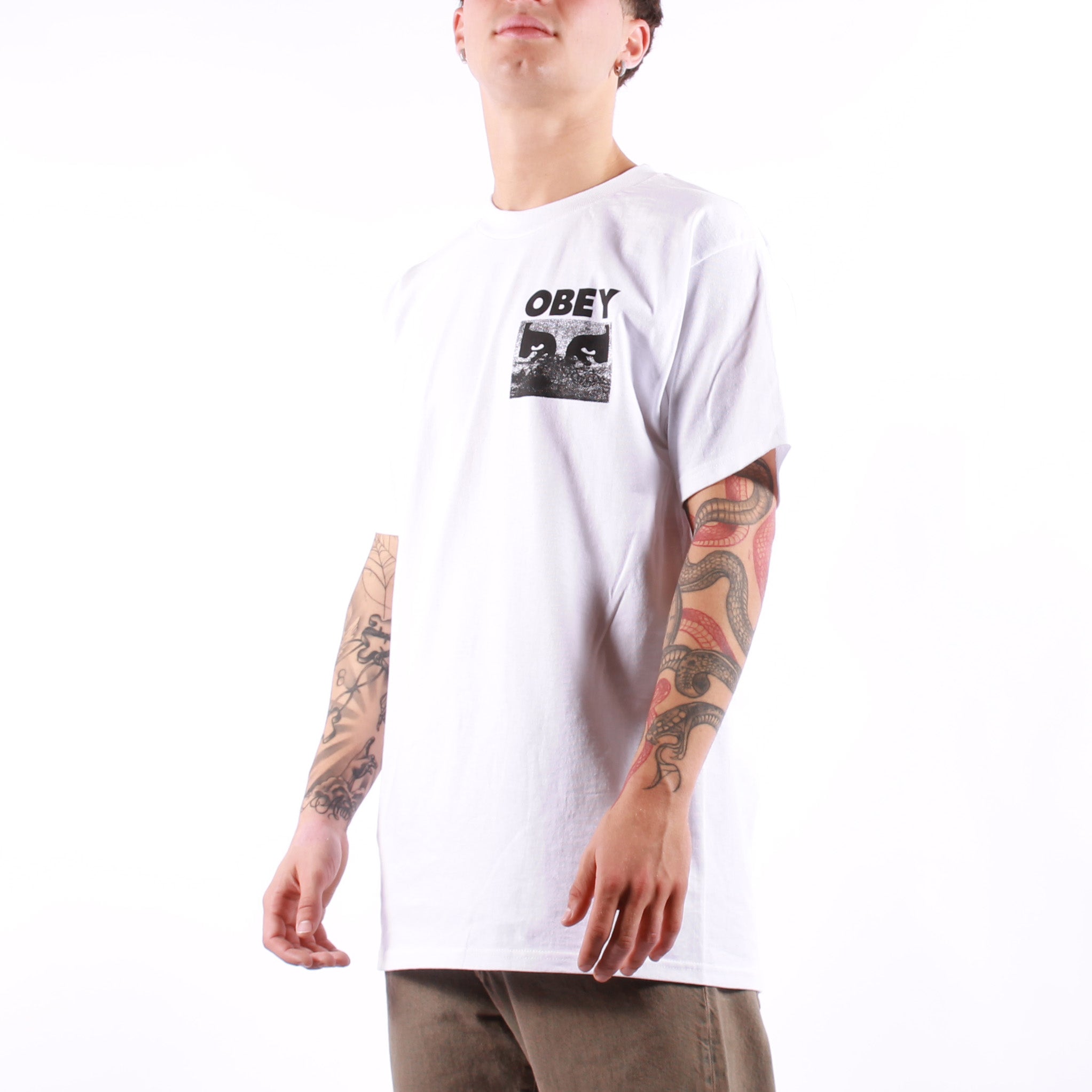 T-shirt Obey in cotone da 6oz, con vestibilità regolare e grafica stampata su fronte e retro. Un capo essenziale e versatile, che unisce comfort e stile in puro spirito Obey.