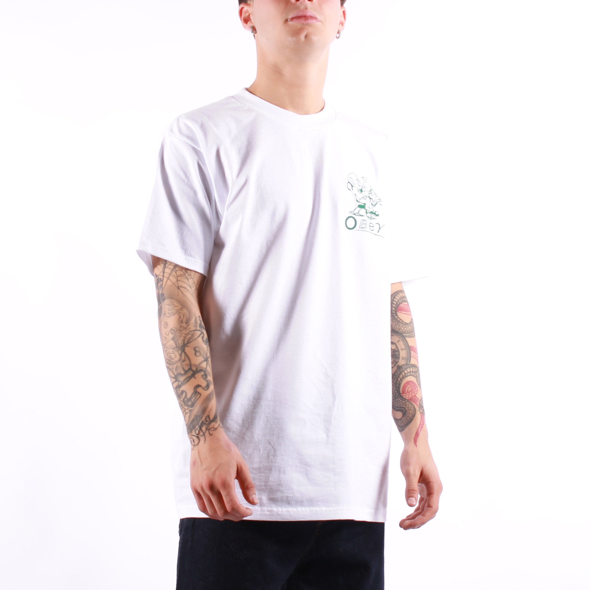 T-shirt Obey in cotone da 6oz, con vestibilità regolare e grafica stampata su fronte e retro. Un capo essenziale e versatile, che unisce comfort e stile in puro spirito Obey.